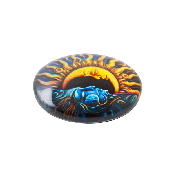 Designed to work with WoodTurningz wizard wands and jewelry creations, these 18mm glass cabochons display a sun and moon motif. The detail in each cabochon appeals to all wizards and works well with jewelry creations. These 18mm diameter cabochons are easy to install with a drop of epoxy and will enhance your project beyond expectations.