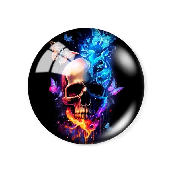Introducing our rainbow-colored skull cabochon, designed to enhance your wizard wands and exquisite jewelry pieces. Every piece is printed on fade-resistant matte photo paper, ensuring the clarity and vibrancy of each picture. To preserve their captivating beauty, each piece has been carefully sealed with a coat of clear acrylic, providing both a safeguard against wear and a radiant finish that captures the essence of their allure.