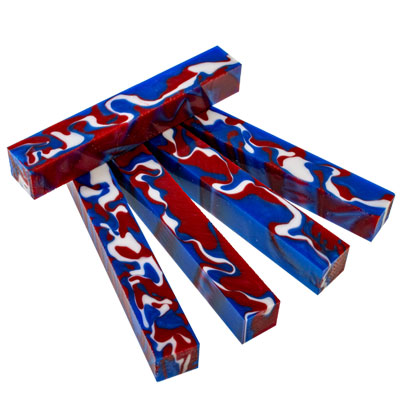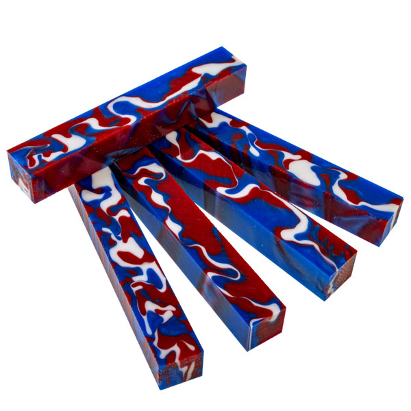 Old Glory has a bright Red, White and Blue swirl throughout. A turning made with this will definitely come to attention!!! Plus, it's Acrylic Acetate!