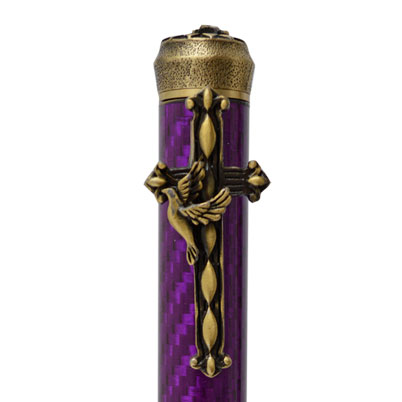 The Amazing Grace Twist pen in Antique Brass is a gorgeous pen kit exclusive to WoodTurningz. The cross clip is the symbol of Christianity and the main focal point of this pen. It is adorned by other religious icons as well, such as a dove, praying hands, a bible, and candles. Each of these enhances and symbolizes aspects of the Christian faith. The dove symbolizes the Holy Spirit, in reference to Matthew 3:16 and Luke 3:22 where the Holy Spirit is compared to a dove at the Baptism of Jesus. The cross represents Christ's crucifixion. Lastly, candles hold symbolic importance, often representing light, guidance, and God's presence.