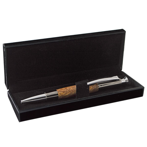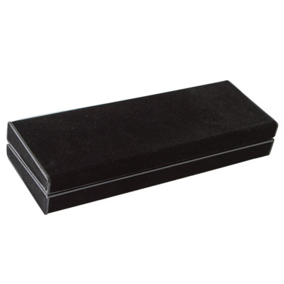Present your pens in style with this upscale black pen gift box. Crafted with elegant black felt over a sturdy black plastic trim, it offers both durability and sophistication. The soft grey interior securely holds your pen, making it perfect for display or gifting. Sized at 6.125" x 2.25" x 1", this versatile pen box is designed to showcase a single pen beautifully, whether for personal use or as a thoughtful gift.