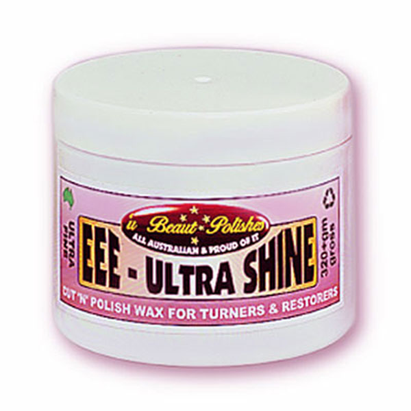Use Ultra Shine as the last sanding step before applying your final finish (eg. Shellawax, Hut wax, etc.). You'll be amazed at the brilliant shine and superb blemish-free surface on your turning. Ultra Shine contains ultra fine abrasives (Tripoli powder) that will enhance a 240 grit sanding step to 1200 grit or more and enhances a 400 grit finish to 2000 grit! The higher grit abrasive you use before using Ultra Shine, the better your finish will be with no sanding marks. Virtually eliminates sanding marks. Use on both woods and plastics.