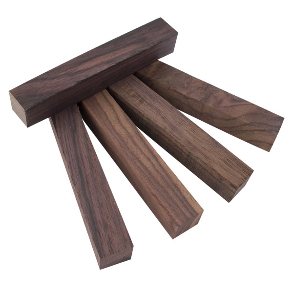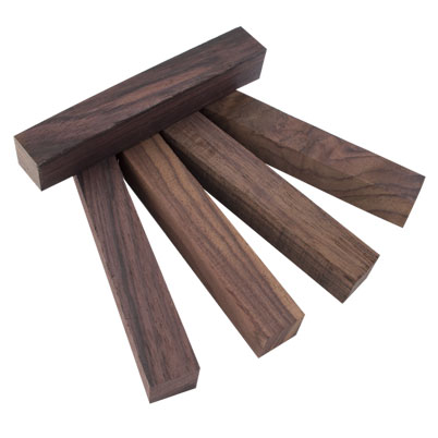 These blanks are brownish with darker veining. In general, rosewoods are strong and heavy and polish up nicely. This wood is also available in larger blanks.