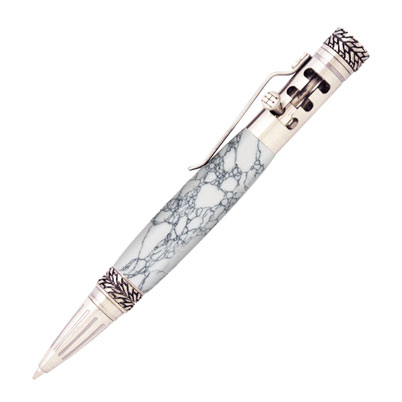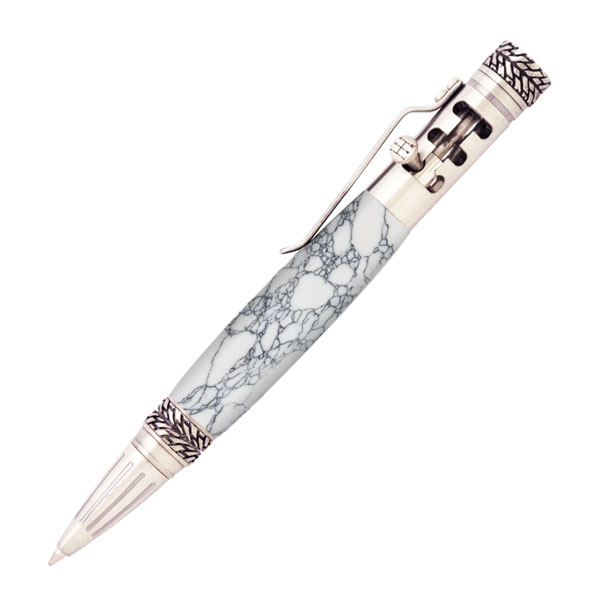 Gearshift Chrome Pen Kit is great for any car enthusiast! The gear shift is etched with a five-speed pattern and the it also features 2 bands of tire tread. In addition, the clip simulates a crowbar attached to the body with two small screws. (This kit uses the Parker style refill is shown here with the PBSS04-WHITE MARBLE.)