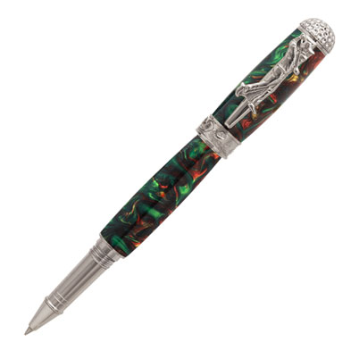These pen kits have truly hit a hole in one! Our exclusive Golfer rollerball pen in chrome is designed to depict the key elements of the game of golf. The golf theme starts with a golf ball on top and finishes with a golfer for the clip and golf course/putting green as the centerband. The cap posts on the rear of the pen which features wide threads to prevent cross-threading.