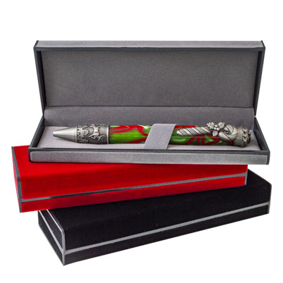 Present your pens in style with this upscale pen gift box. Crafted with elegant grey felt over a sturdy black plastic trim, it offers both durability and sophistication. The soft grey interior securely holds your pen, making it perfect for display or gifting. Sized at 6.125" x 2.25" x 1", this versatile pen box is designed to showcase a single pen beautifully, whether for personal use or as a thoughtful gift.