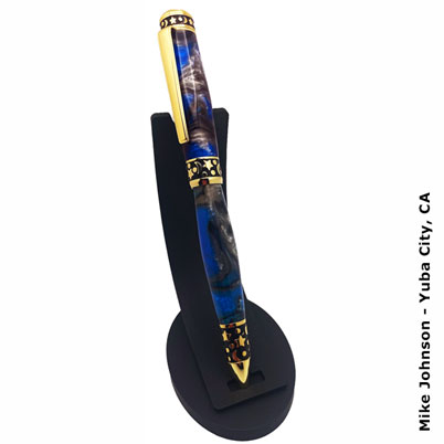 Inlace Acrylester #121 - Blue Damascus is made up of black, bright blue, and silver swirls. It is a great blend of colors that are perfect for anyone! Blanks are sized at 3/4" x 3/4" x 5".