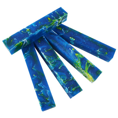Blue Green Ocean is a made up blue/green swirls. This pen blank is sized at 5/8" square x 5".