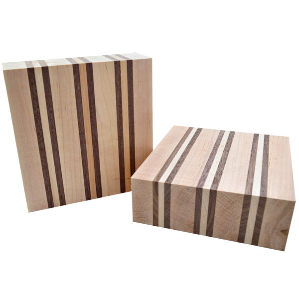 The 6 x 6 x 2" bowl blank is a Laminate which is made up of Maple and Walnut woods. **NOTE: These blanks may require some truing to have the laminates line up perfectly straight.