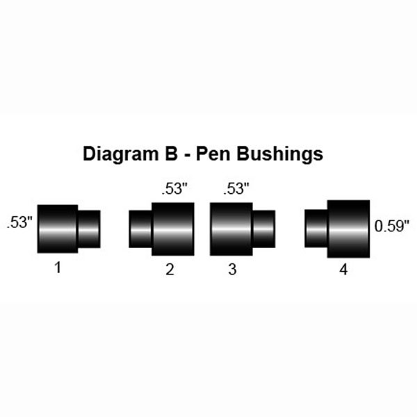 8 Piece Barrel Trimmer KitWoodTurningz' 8 Piece barrel trimming kit has everything you want in a trimmer. You get *BOTH* a 5/8" and 3/4" HSS cutters (allowing you to set up two sizes at once), Pilot bores in 7mm, 8mm, 10mm, 3/8" and 27/64".