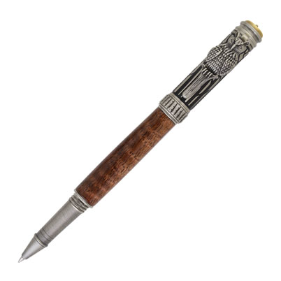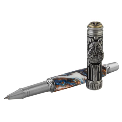 WhoWhoo doesn’t love an Owl Pen? Our Owl Rollerball in Antique Pewter has arrived. There are over 200 species of this incredible bird. This pen displays its mystique with elegant and contemporary styling from top to bottom. The chic cap posts on the rear of the pen and has wide threads to prevent cross-threading. This pen will show off your best work! (Shown here on a Curly Koa pen blank)