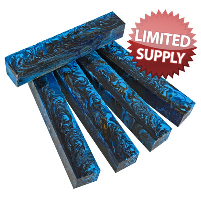Driftwood - PBIAXX187 is a limited blank made up of a blue, teal blue, and a hint of olive gold swirls throughout! This color is ideal for anyone! WoodTurningz is proud to manufacture Inlace Acrylester Blanks! We have a limited supply of these 3/4" square by 5" long blanks.