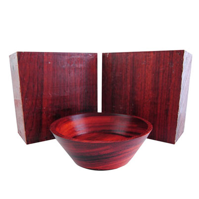 Padauk turns and polishes great! It is an excellent turning hardwood with coarse grain and color ranging from purple-red to orange-red. This bowl blank is sized at 6 x 6 x 3".