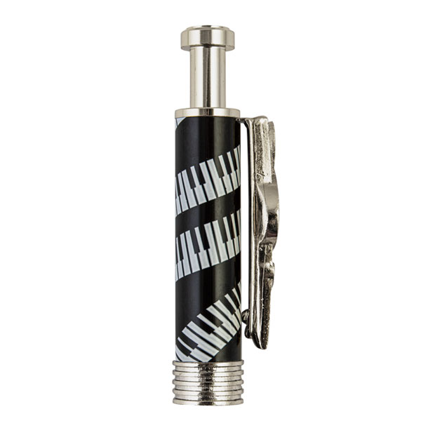 Our Piano Click pen will bring music to your ears (and eyes)! With its piano keys encircling the upper barrel, musical staff center band, and treble clef pen clip, this kit will appeal to any music lover! It has a simple, modern design and smooth click mechanism which makes it feel like a dream! It displays plenty of barrel area and is the perfect pen to use those exhibition blanks.