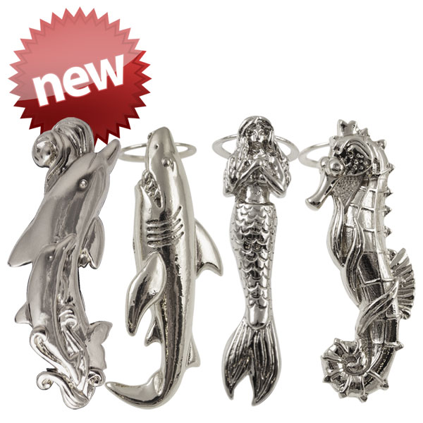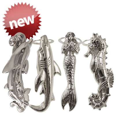 Maximize your design options with this four pack of chrome Sea Life Clips. Each pack includes one each of the Dolphin, Sea Horse, Mermaid and Shark design. The clips are easily interchangeable on the pen body with no tools.