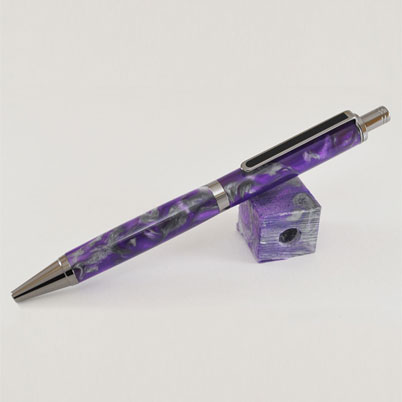 The Slimline Pro is a larger Slimline style with Parker style click pen mechanism. The striking Gunmetal plating perfectly combines durability, beauty, and elegance.