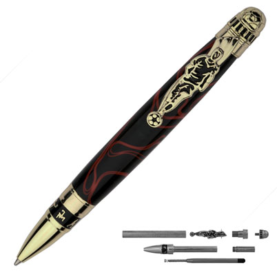 Design an ideal gift for soccer enthusiasts with a pen that captures the essence of the beautiful game. The pen tip showcases silhouettes of soccer players skillfully dribbling and kicking soccer balls. The pen clip features a dynamic silhouette of a soccer player sprinting towards a ball, with a backdrop that exudes a sense of motion and takes inspiration from soccer trophies. The pen cap end is shaped like a stadium and prominently displays a soccer ball. With various pen blank options, you can personalize the pen to reflect your favorite player or team. Equipped with a smooth-writing Parker-style refill, this pen is both functional and stylish.
