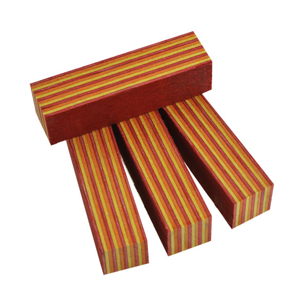 Tequila Sunrise short pen blank showcases a captivating array of colors, carefully arranged in alternating layer patterns of vibrant red, bright orange and refreshing lemon yellow dyed woods. The result is an exquisite blend of hues that truly captivate the eye.