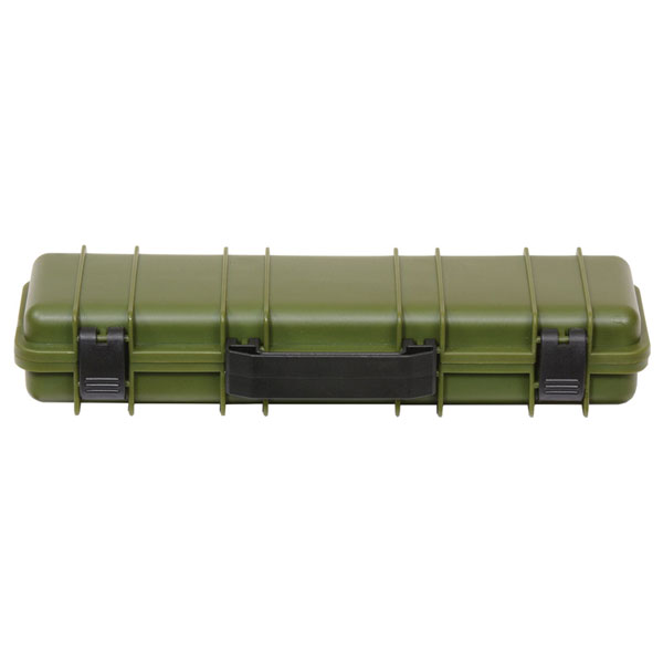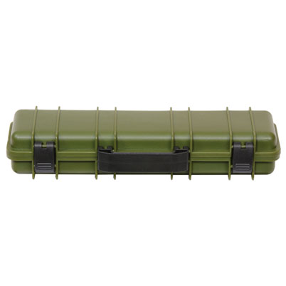 The Tactical Rifle Case Pen Box in OD Green replicates a real rifle case. It has a sleek tactical ribbed exterior (which is made from high-quality injection molded polymer) and has a dense foam interior insert to fit a single pen. In addition, it has two working clasps and a hinged handle for a secure closure. Fits bullet pens of any size. Sized at 6 3/8" x 1 5/8" and 1" tall.